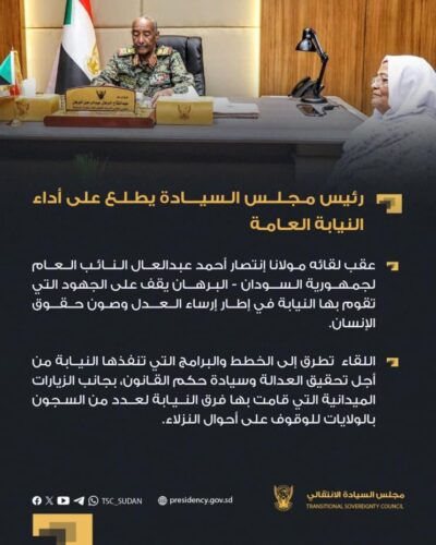 رئيس مجلس السيادة يطلع على أداء النيابة العامة
