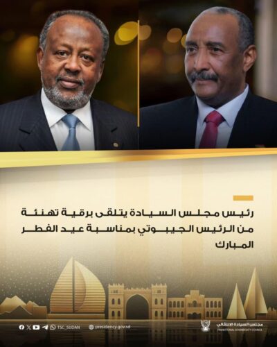 رئيس مجلس السيادة يتلقى برقية تهنئة من الرئيس الجيبوتي بمناسبة عيد الفطر المبارك
