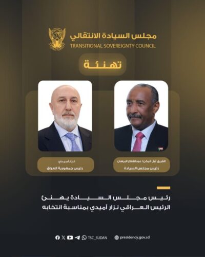 رئيس مجلس السيادة يهنئ الرئيس العراقي نزار آميدي بمناسبة انتخابه