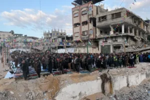فلسطينيون يؤددون صلاة العيد على انقاض المساجد المدمرة في قطاع غزة