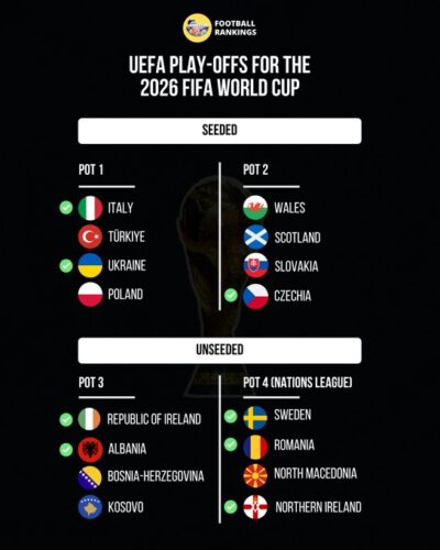 نتائج قرعة الملحقين العالمي والأوروبي المؤهلين لكأس العالم 2026